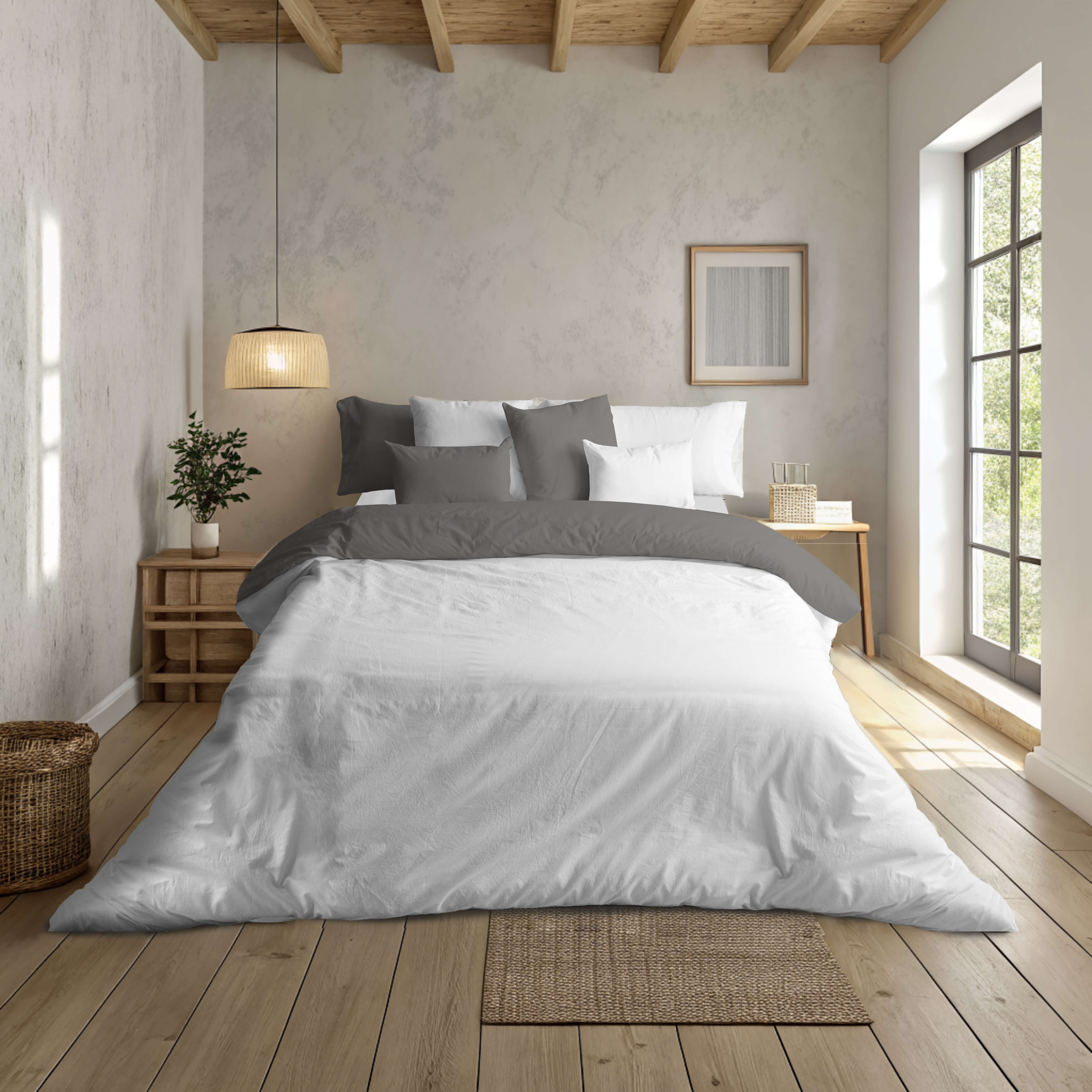 FUNDA NÓRDICA BICOLOR REVERSIBLE GRIS 7 / BLANCO 100% ALGODÓN